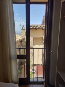 - Lodging Private room / Private bathroom. A/C and heat, in a boutique Hotel in the heart of the old city of Assisi. 15 minute walk to most sacred sites from this central location.